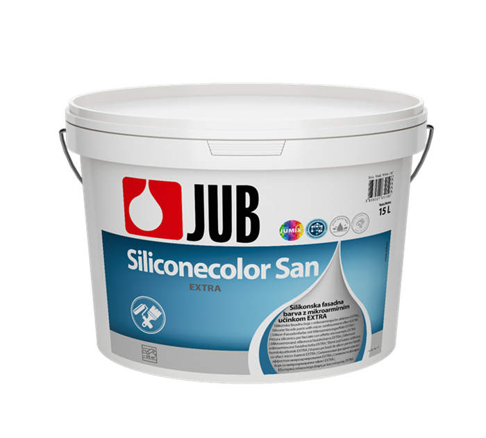 Finální fáze zahrnuje dvouvrstvou aplikaci barvy JUB SILICONECOLOR San EXTRA, která poskytuje dlouhodobou ochranu před řasami a plísněmi. Tato silikonová barva je vhodná i pro strukturované povrchy, zakrývá mikrotrhliny, nepraská, má nízkou nasákavost (třída W3), vysokou paropropustnost a odolnost vůči klimatickým vlivům. Fasádní barva je dostupná ve stovkách odstínů, což umožňuje zachování původního vzhledu objektu.