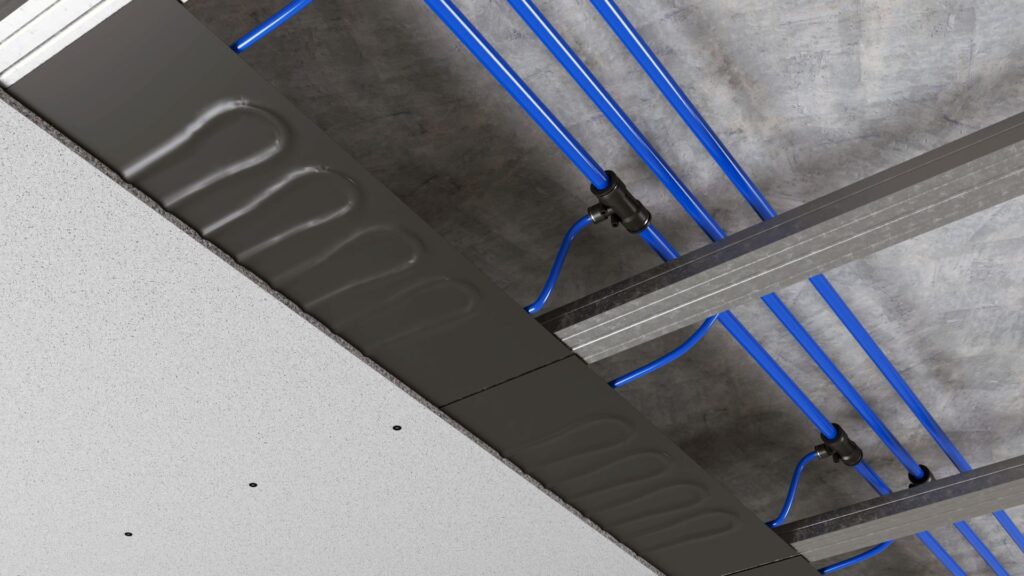 Oproti klimatizaci skýtá tento systém mnoho výhod. Vnitřní prostředí například ochlazuje bez nutnosti proudění vzduchu a také nezpůsobuje teplotní výkyvy. „Chlazení v podhledech je navíc zcela tiché a nevyžaduje žádnou údržbu,“ dodává Robert Hošek. Ideální je podle něj kombinace chlazení se sádrokartonovými deskami s vysokou tepelnou vodivostí, například těmi obohacenými o grafit. „Desky s grafitem výborně rozvádí chlad v celé své ploše a zlepšují tak výkon systému i při použití menší plochy chladícího tělesa,“ vysvětluje odborník z Rigipsu. Rohožemi na stropě může navíc v zimě proudit také teplá voda, takže je lze využít nejen k ochlazení domu, ale i k jeho vytápění. „Je to tedy jeden z mála systémů, který se na základě požadavků může změnit jak v topení, tak v klimatizaci,“ říká Robert Hošek.