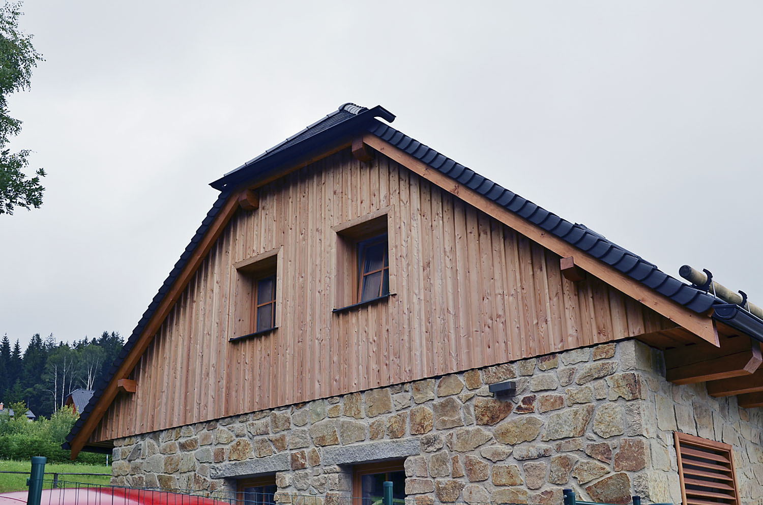 Příklad dřevěného obkladu cihelného štítu