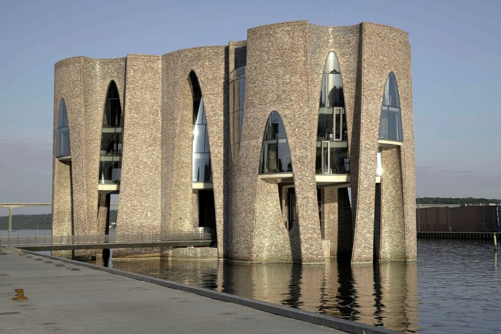 V přístavu u dánského města Vejle se v moři tyčí budova, jejíž elegantní křivky upoutají zrak každého kolemjdoucího. Dům nese příznačný název – Fjordenhus, tedy Dům ve fjordu. Jde o návrh dánského výtvarníka Olafura Eliassona a týmu z jeho ateliéru Studio Other Spaces. Skla pro tento unikátní projekt dodala společnost Guardian Glass.