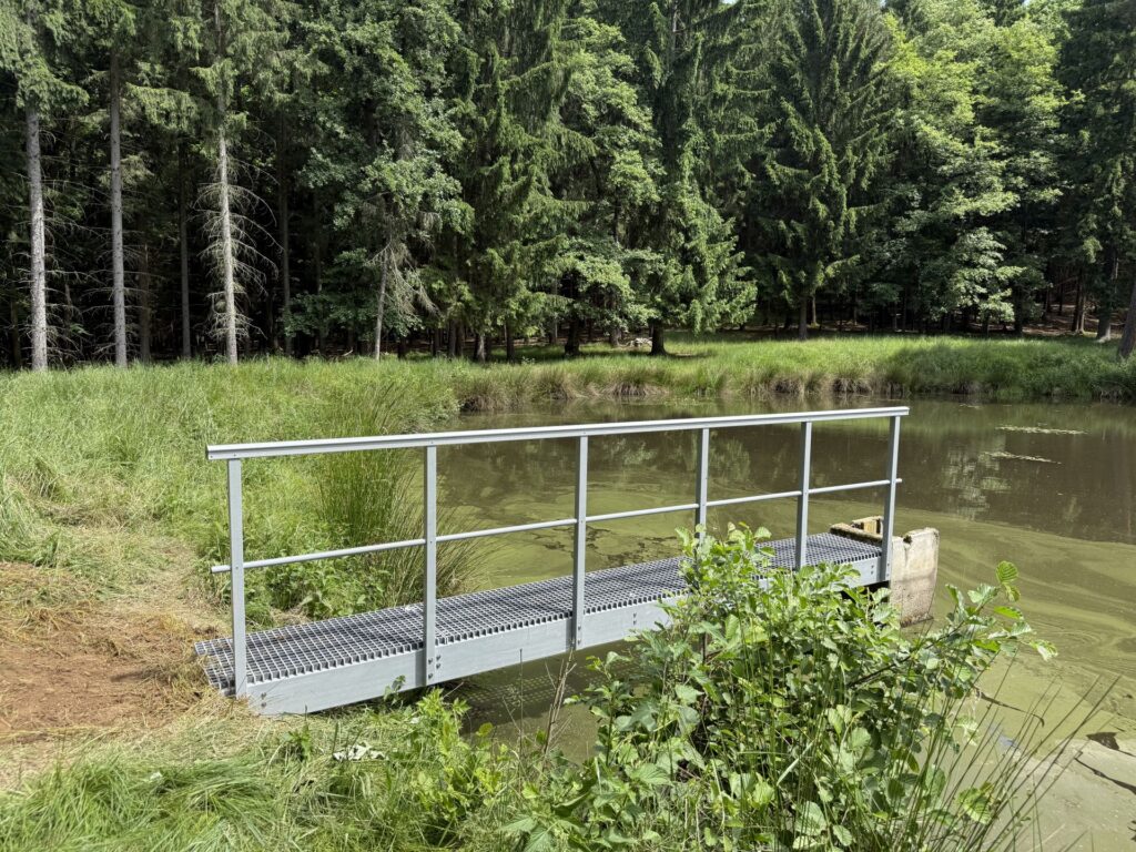 V daném prostředí by byl téměř nemožný úkol dopravit ocelové lávky k rybníkům, protože svařování a pozinkování nelze provádět na místě.