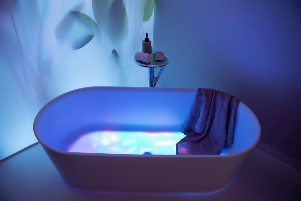 Volně stojící oválná vana VAL LUMINEX přináší zcela jedinečný zážitek z koupele. Od tradičních van se odlišuje implementovaným LED osvětlením v základně. Světelný panel promítá na vodní hladinu a do okolního prostoru nejrůznější motivy, které vytváří krásné scény – nechybí témata připomínající poušť, les nebo moře. Koupel si tak vychutnáte za doprovodu efektní barevné show. Autorem vany je designér Konstantin Grcic.
