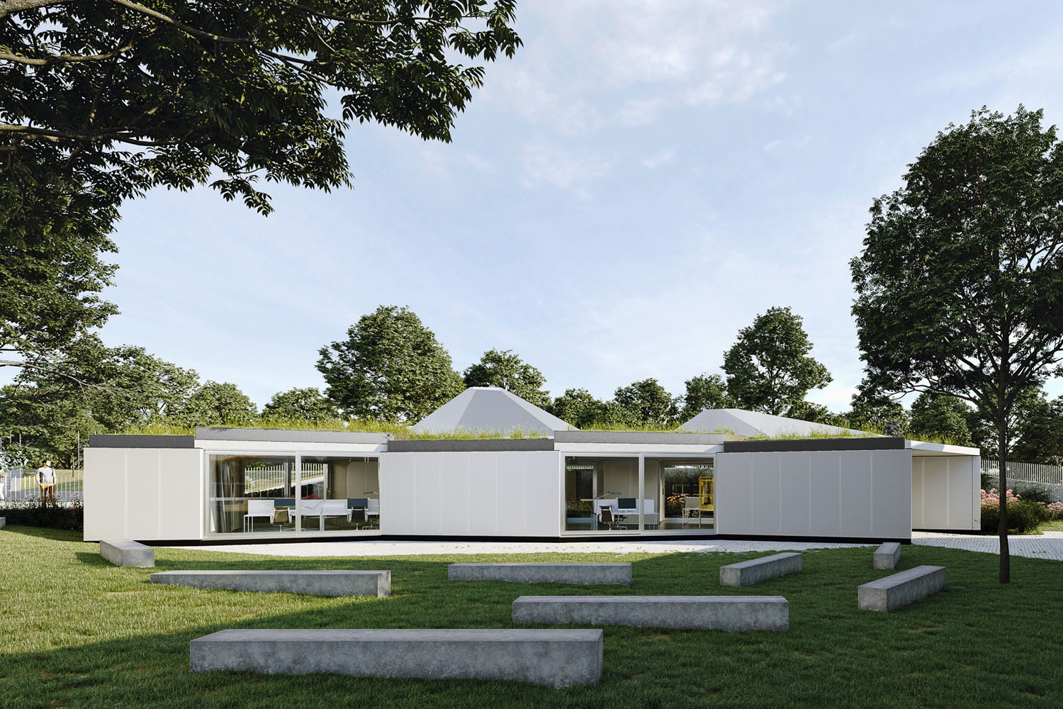 Oficiálním názvem Vývojové inovační centrum modularity ve Vizovicích je již několikátým pokračováním spolupráce společnosti KOMA MODULAR a studia Chybík+Krištof, trvající od roku 2011.