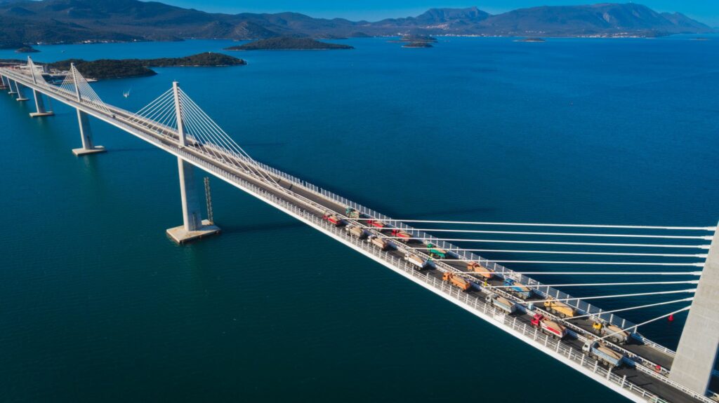 Chorvatský most Pelješac dosahuje rozpětí 2400 metrů, což z něj dělá druhý nejdelší zavěšený most v Evropě. Stavba je první částí projektu silničního spojení s jižní Dalmácií, což znamená, že další výzvy ještě stavebníky čekají. A to nejen stavební, protože celá oblast se nachází v zóně extrémně vysoké seismické aktivity, a navíc je proslulá silným větrným počasím. Stavba byla zahájena už v roce 2018, dokončena letos a tento týden slavnostně otevřena pro veřejnost.