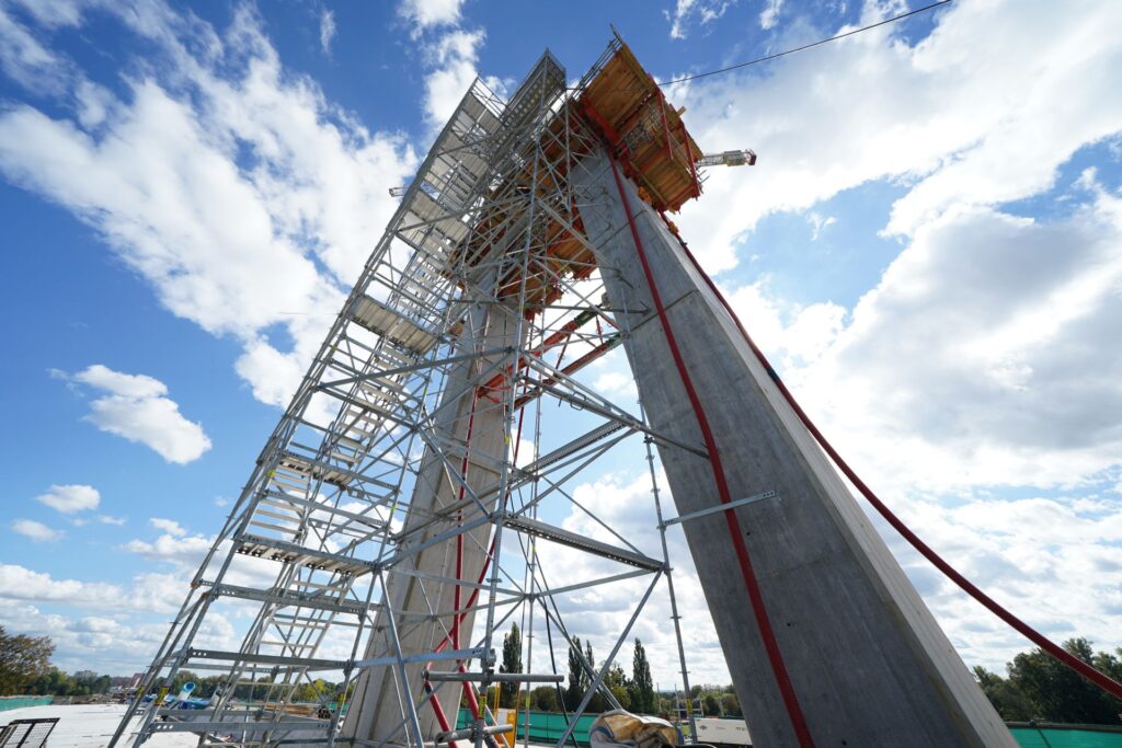 Na realizaci tohoto pylonu významně přispěla společnost PERI, která dodala lešení a bednění pro celý proces výstavby. PERI, přední světový dodavatel bednicích a lešenářských systémů, poskytla technická řešení, která umožňují bezpečnou a efektivní stavbu i v takto náročných podmínkách. „Betonáž probíhala každé tři dny ve spolupráci s tesaři – optimalizovali jsme výkresy tak, aby byl proces co nejefektivnější. Díky tomu došlo ke zkrácení termínu výstavby,“ uvedl obchodní zástupce společnosti PERI.