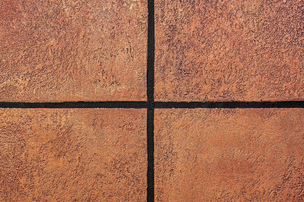 Realizace kreativní omítky – detail struktury „zrezivělý plech à la korten“, Praha Holešovičky