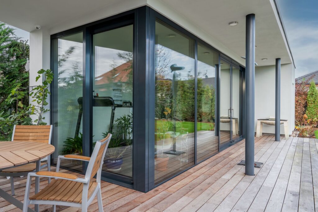 Okna: HS portál VEKRA v provedení SLIM, barva RAL 7016, nulový práh, VEKRA, www.vekra.cz