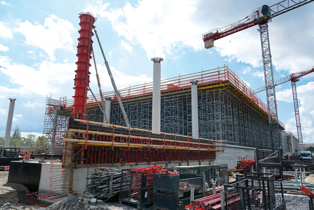 Nejdůležitější částí projektu bylo zajištění podpěrné konstrukce. Společnost PERI zajistila dodávky bednění a lešení ve velkém množství v požadovaném čase. Na průběh výstavby reagovala flexibilně.