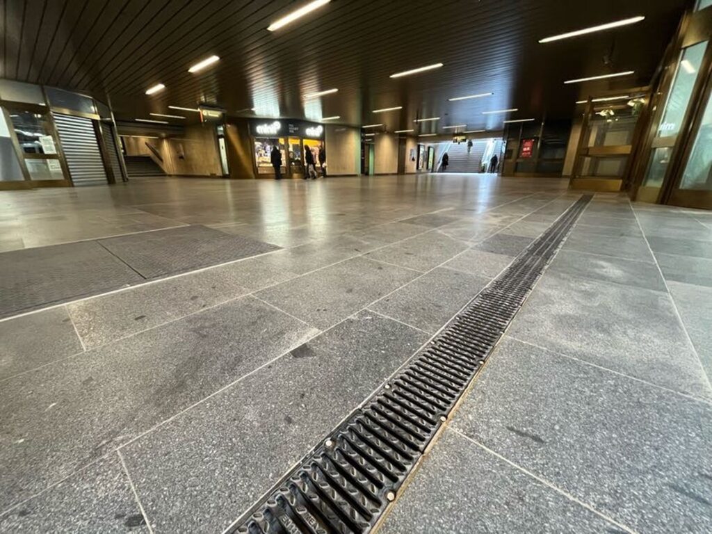 V rámci revitalizace proběhly plošné sanace průsaků na celkové ploše zhruba 8000 m2. Jednou z použitých technologií pro odvodnění byly žlaby MEA EN 1500 s litinovými rošty.  Vysokokapacitní žlaby mají spádované dno a dokážou zachytit velký objem dešťových vod.