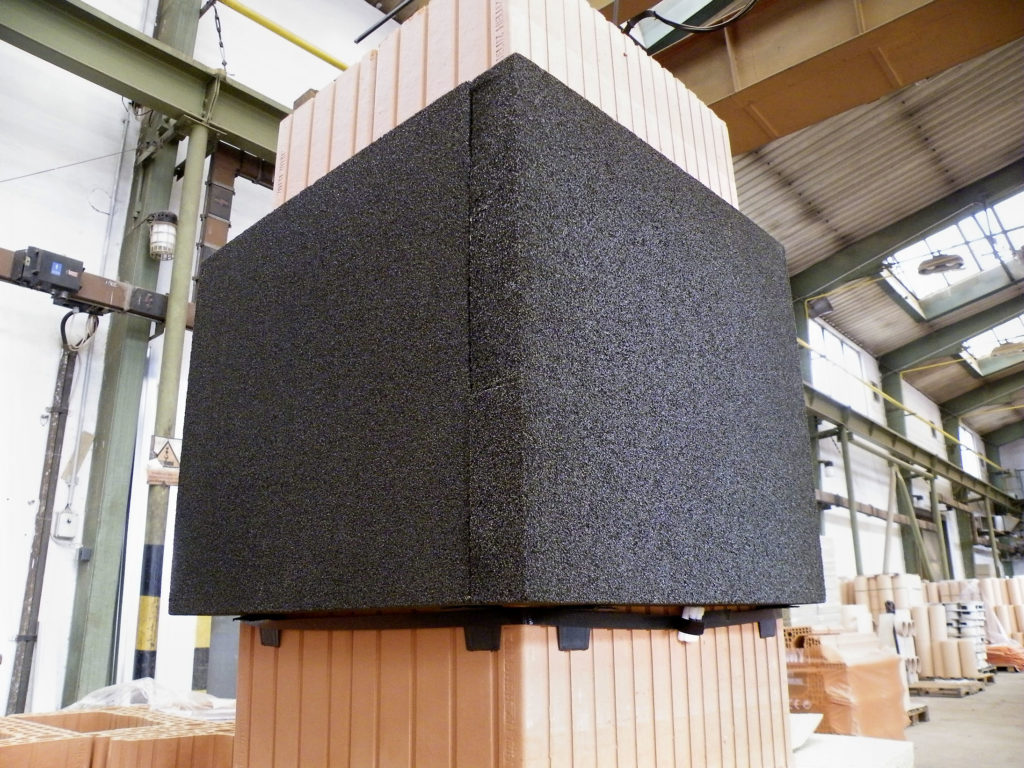 Nový parotěsný prostup cihelných komínů od společnosti HELUZ tvoří desky z pěnového skla o tloušťce 50 mm (výška 500 mm, délka 450, resp. 850 mm). Desky se v požadovaném místě prostupu nalepí pomocí montážních pomůcek na komínové těleso. Po slepení vytvářejí parotěsný, nehořlavý a tvarově stálý prostup o velikosti 500 x 500 mm (resp. 500 x 900 mm).