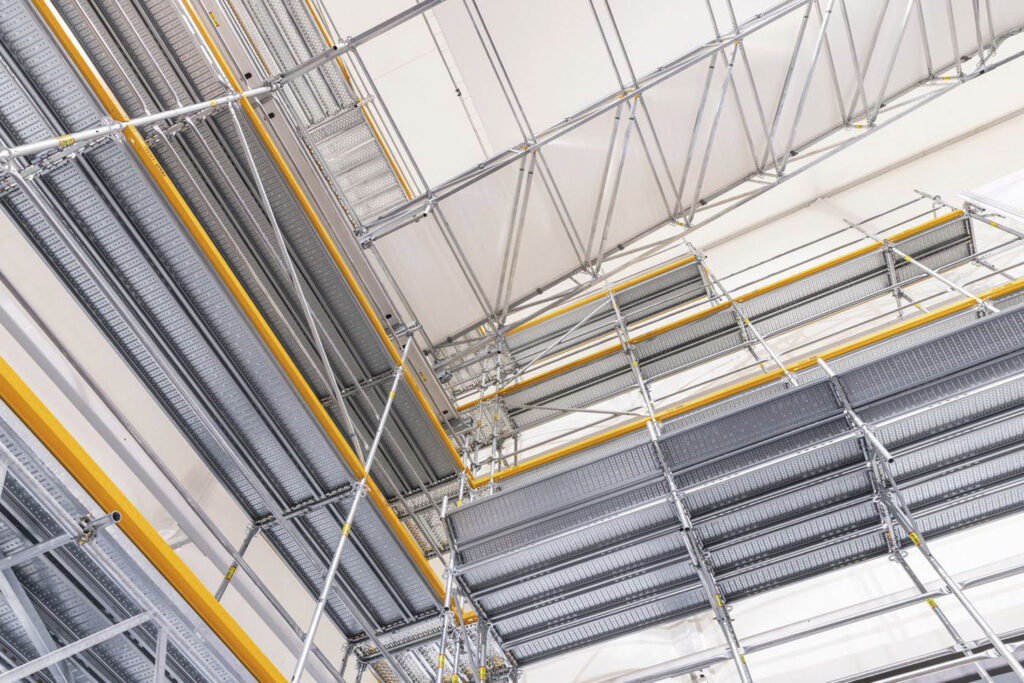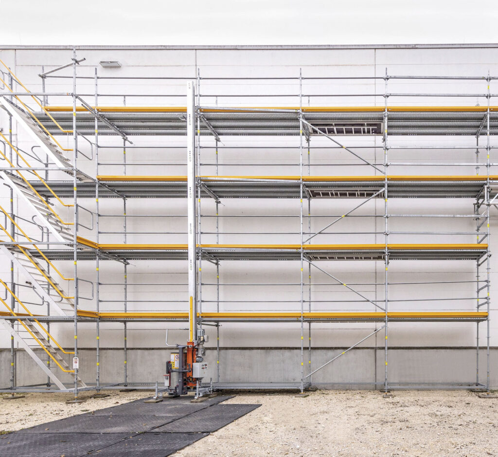 • Bezpečnostní prvky: Lešení je vybaveno pokročilými bezpečnostními prvky minimalizujícími riziko pracovních úrazů, včetně pádů z výšky.