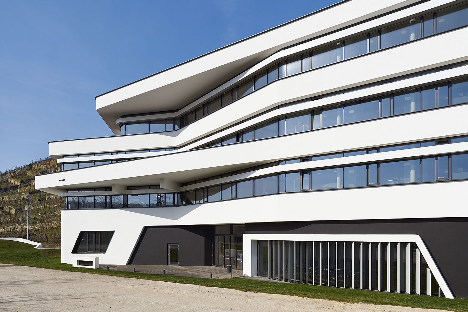 Nové sídlo společnosti Südwestmetall v německém Esslingenu budí pozornost nejen díky své dynamické a amorfní estetice. Unikátní je i z pohledu energetických úspor a tepelné izolace, neboť architekti ze studia (fritzen 28] použili nejnovější udržitelné technologie. Záměrně zvolili fasádní systém Schüco FW 50+. HI, který skrze elegantní štíhlé profily garantuje maximální tepelnou izolaci a vytváří doslova průhledné kanceláře. Jedinečné pracovní prostředí s dostatkem přirozeného světla tak nabízí krásné výhledy na nedalekou vinici.