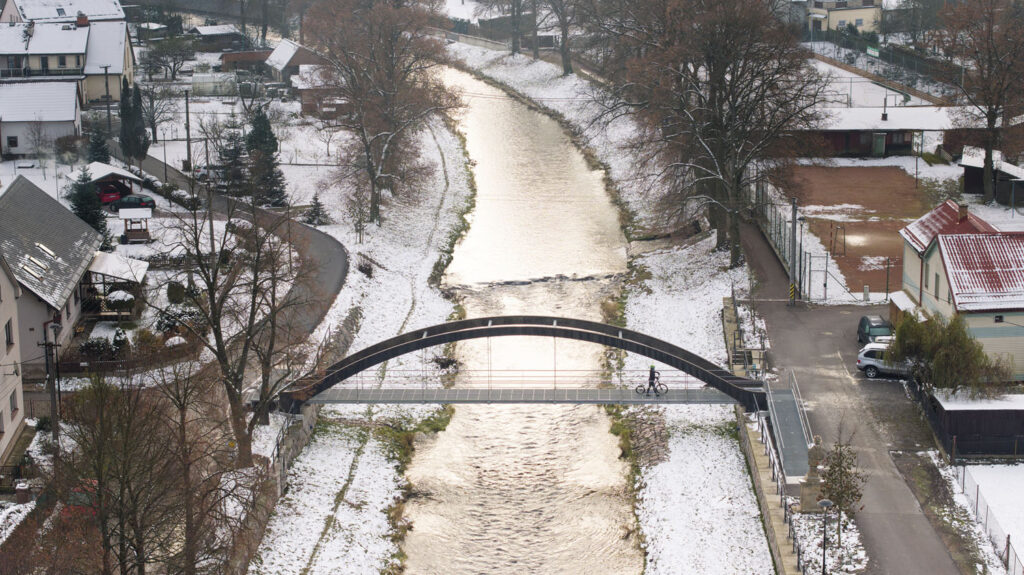 Původní lávka přes Orlici v Žamberku byla postavena v první polovině minulého století, její nosnou konstrukci tvořila dvojice betonových oblouků, každý tloušťky 350 mm. Patřila do panoramatu města a místní si ji oblíbili, její konstrukce však byla v tak špatném stavu, že musela být nahrazena novou. Na jejím místě tedy vznikla unikátní oblouková lávka z UHPC s vloženou ocelovou konstrukcí mostovky a barokní sochou sv. Jana Nepomuckého.