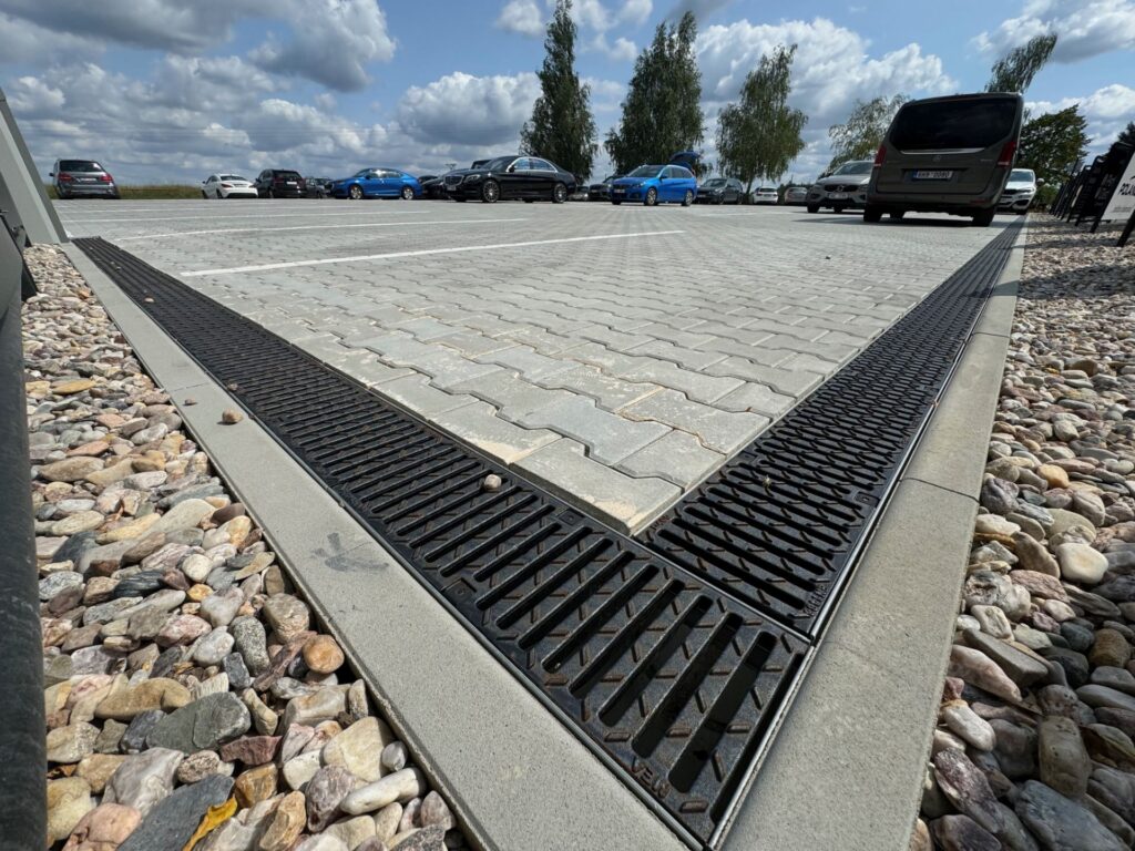 Golfový areál zrenovoval také parkoviště pro osobní vozy. Jeho odvodnění zajišťují žlaby MEA SV 1500 s ochrannou hranou z žárově pozinkované oceli. Tyto multifunkční žlaby se používají pro odvodnění parkovišť, náměstí, pěších zón, nákupních center i městské komunikace.