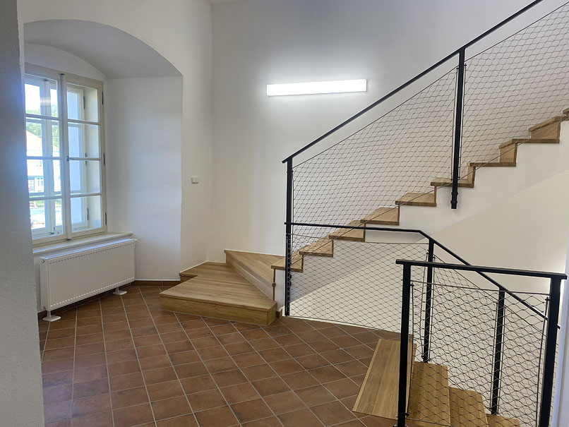 V revitalizovaném zámečku v Bělé nad Radbuzou se uplatnil také designový purismus svítidel ECOOS II od značky Zumtobel.