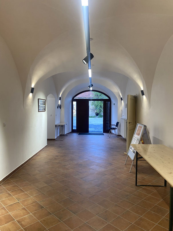 Hlavní budova v rozhlehlém areálu tvrze podléhá od konce roku 1995 památkové ochraně, což bylo limitující při návrhu fasádních prvků, barevnosti fasády a okenních otvorů včetně jejich výplní pro zajištění denního osvětlení. Zvýšeným požadavkům na umělé osvětlení nejlépe dostála sestava výkonných a hospodárných svítidel značek Zumtobel a Thorn. Autoři projektu vybrali pro rekonstruovaný objekt barokního zámečku kombinaci svítidel PERLUCE, ECOOS II, VIVO II a TECTON z širokého portfolia značky Zumtobel doplněnou o venkovní nástěnná svítidla PIAZZA II LED od značky Thorn.