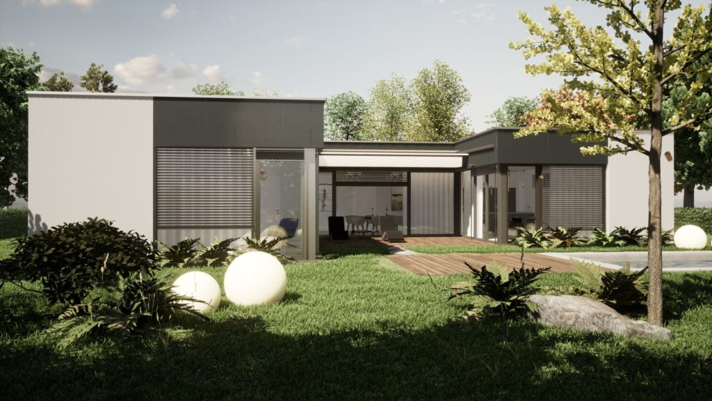 Podstatou přízemní atriové dřevostavby VEXTA PERFECTO je konfigurace dispozic přesně na míru svých majitelů a nadstandardní vybavení již v základu. Jedinečný modulární systém s úpravami počítá, a tak si lze dům dopřát ve variantě 2+kk stejně dobře jako 5+kk. Atypický design dřevostavby přitom vychází z přízemních staveb s velkými prosklenými plochami, který umocňují autentické fasádní obklady, takzvané kamenné tapety.