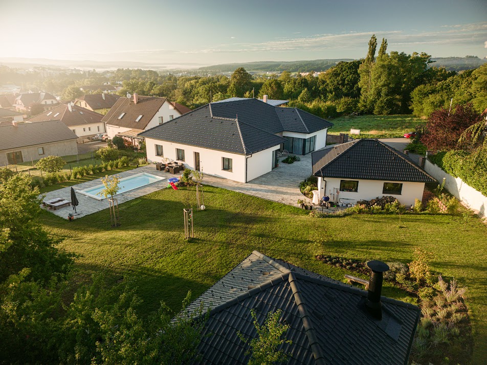 Volba typu střechy by se kromě našeho vkusu a celkového designu domu měla odvíjet především od toho, jak využíváme podkroví. „Pro obytné podkroví je ideálním řešením klasická sedlová střecha se sklonem okolo 35°, která poskytuje dostatek prostoru pro místnosti s klasickou výškou stropu,“ říká Jakub Ponec, odborník na střechy ze společnosti Betonpres. V případě neobytné půdy, která slouží spíše k uložení sezónních věcí, je vhodnou volbou střecha valbová. „Ta se vyznačuje nižším hřebenem, což bývá výhodné zejména z hlediska stavebních omezení nebo požadavků územního plánu,“ vysvětluje odborník z Betonpresu. Pro moderní řešení s otevřeným podhledem do krovu se pak doporučuje střecha pultová, jejíž sklon se může pohybovat i okolo pouhých 15°.