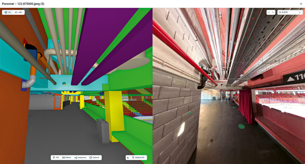 Zásadní rozdíl v přístupu společnosti GEMO spočívá v tom, že BIM není chápán pouze jako trojrozměrný model pro projekci, ale jako informační model stavby, který se průběžně aktualizuje během celé výstavby. V praxi to znamená systematické pořizování 360° fotodokumentace, laserové skenování skutečného stavu, dronové mapování staveniště a jejich přímé napojení na společné datové prostředí a dílčí digitální modely stavby. Výsledkem je, že projektanti i investoři mají k dispozici aktuální a ověřená data, na jejichž základě lze rychle reagovat na změny vznikající při realizaci.