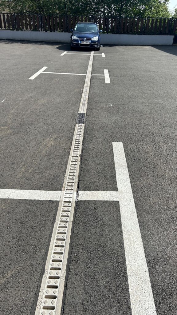 PARKOVIŠTĚ U STADIONU ODVODNĚNO MONOLITICKÝMI ŽLABY MEA