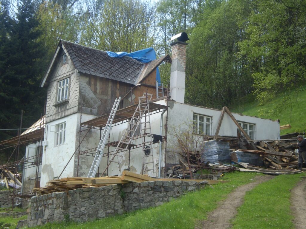 Největší výzvou byla střecha. Krov se musel kompletně strhnout a postavit znovu, protože hrozilo jeho zhroucení. „Staré zateplení tvořily piliny mezi obložením, a to jen na některých místech, takže to fungovalo tak maximálně v létě. V zimě to byla spíš dekorace než izolace,“ směje se dnes pan Jiří Kunce.
