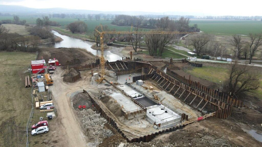 „Projekt počítal s tím, že napřed opravíme jez a vodu mezitím budeme převádět přes samostatnou jímku plavební komory. To by však vedlo ke stísněné logistice a riziku rozplavení základové spáry pod komorou, a proto jsme po dohodě s investorem vymysleli jiné řešení. Oba objekty budujeme souběžně v jedné velké jímce a vodu převádíme bočním obtokem. Změna projektu jímky nás na začátku mírně zdržela, ale předpokládáme, že nové řešení zrychlí průběh další výstavby tím, že oba objekty budou moci být prováděny současně. První zvýšené průtoky v řece Moravě již prokázaly, že jímka funguje dobře a stavbu plavební komory neohrozily,“ říká Lubomír Mik, vedoucí projektu ze společnosti Metrostav DIZ.
