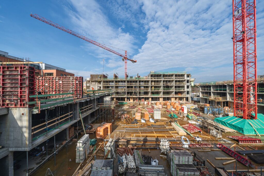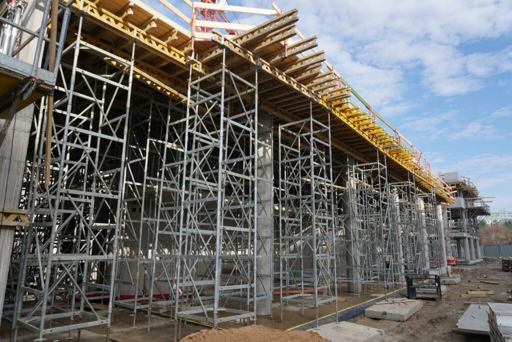 Pro zhotovení stropů bylo nasazeno převážně panelové stropní bednění SKYDECK, které je vhodné pro nasazení od bytové až po průmyslovou výstavbu.