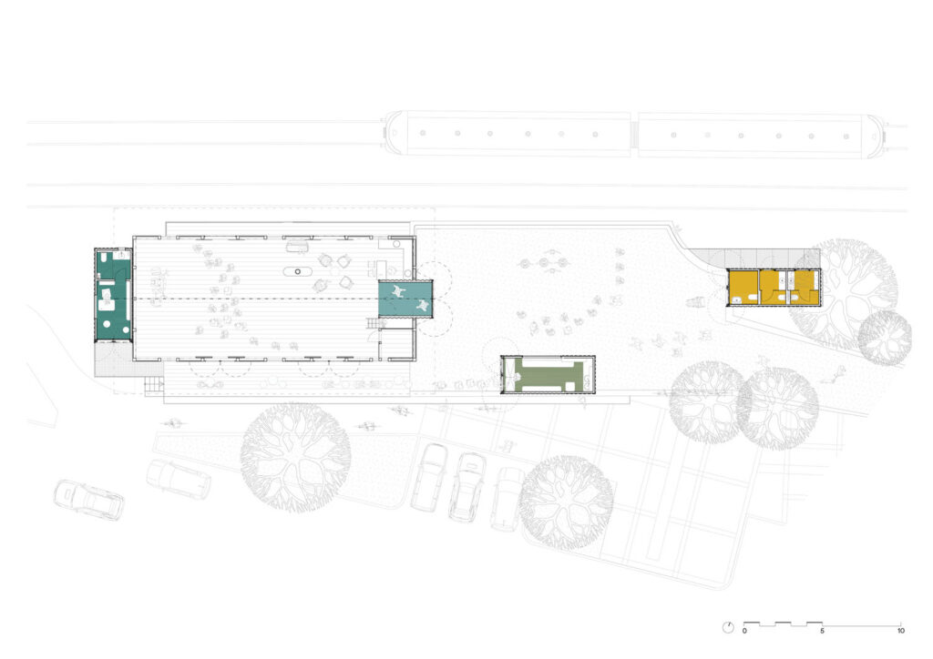 Nádražní sklad z 19. století získalo město Řevnice ve značně zchátralém stavu. Jeho skrytý potenciál objevila ředitelka umělecké školy, která ho začala využívat jako výstavní, koncertní a taneční sál. Dřevák tak dostal druhou šanci, ale bylo třeba vybudovat zázemí. Jak ho do halové stavby přidat, aniž by se zacpal prostý, jednolitý prostor? Zázemí proto autoři umístili vedle budovy ve formě lodních kontejnerů, odkazujících k novodobým způsobům dopravy zboží. Zachovala se tak a nově interpretovala atmosféra dopravního uzlu, kterým železniční překladiště kdysi bylo.
