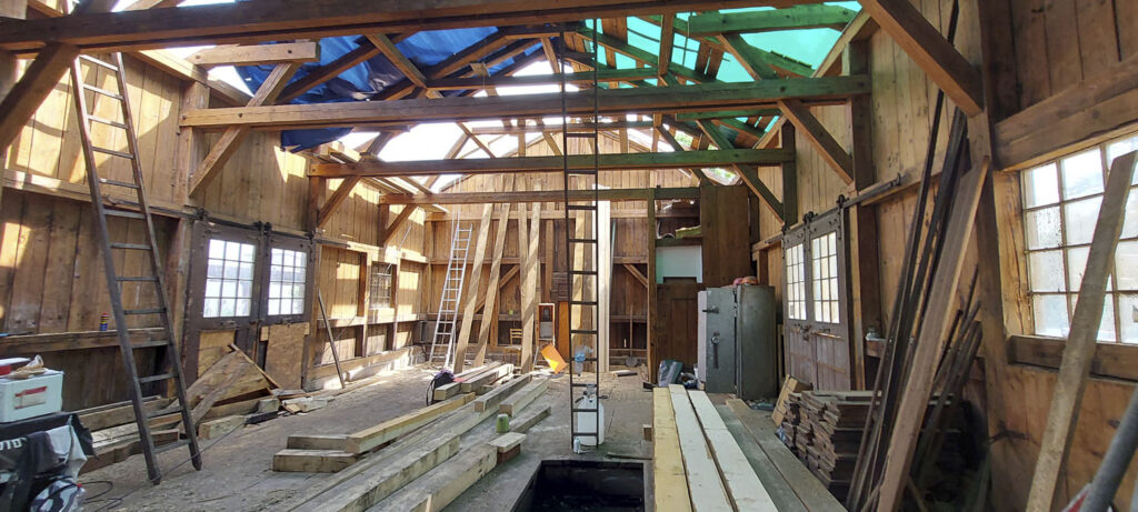 Rekonstrukce Dřeváku probíhala ve dvou etapách. V první z nich se v zachraňoval samotný sklad, který byl v podstatě rozebrán prkno po prkně, trám po trámu. V této etapě bylo největším úkolem naladit prováděcí firmu na zachování a repasi prvků v co největší míře. Vyměnily se jen napadené dřevěné prvky, doplňovalo se a nastavovalo. Ve finále se podařilo sehnat i pár nadšenců, kteří pomohli s dodáním chybějících autentických světel a vypínačů z bakelitu nebo smaltovaných tabulí.