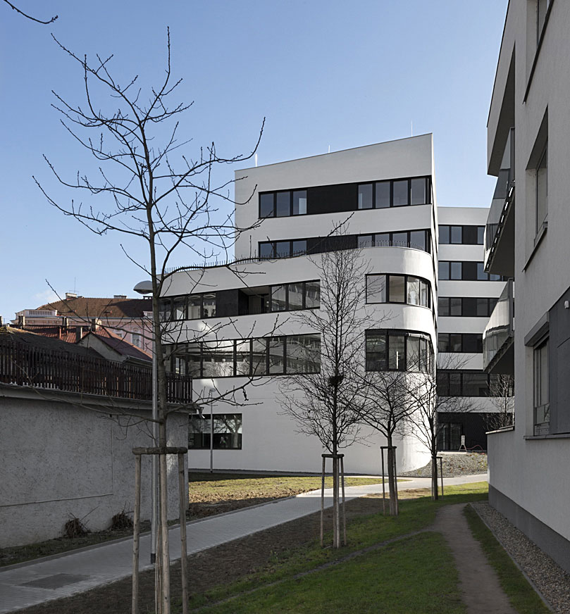 Uprázdněné prostranství uprostřed urbanisticky nejednotné městské zástavby dalo vzniknout modernímu polyfunkčnímu domu, který zde funguje jako dominantní element spojující protichůdné vlivy. Fasáda zaujme svým proměnlivým výrazem, který sjednocují velkoplošné prosklené plochy.