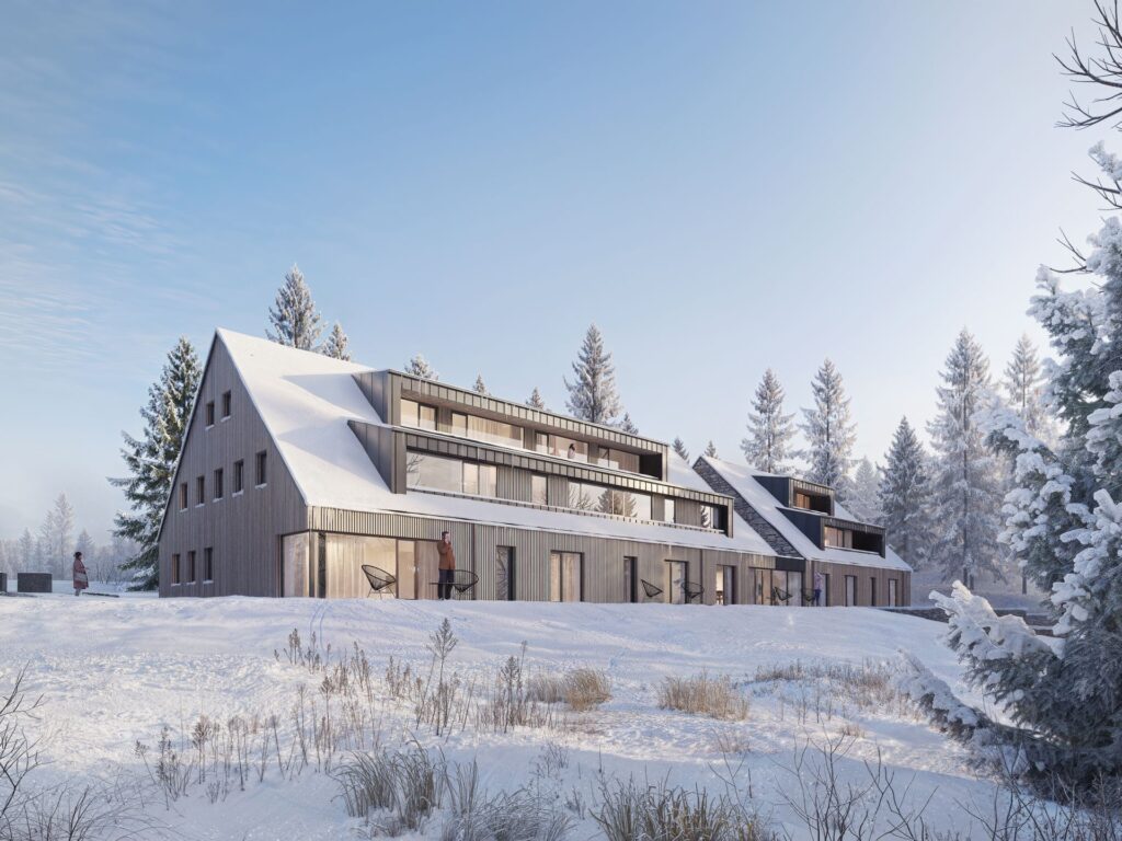 „Zájem o horské rezidence po stagnaci v minulých letech opět výrazně stoupá, proto připravujeme další horské projekty,“ řekl Michal Lexa. Developer nově získal stavební povolení pro projekt Na Desítce ve Strážném a zahájil předprodej 14 plně vybavených apartmánů o dispozicích 1+kk až 4+kk a velikostech od 32 do 110 m2. Praktické řešení pro každodenní potřeby zajišťují sklepy. Noví rezidenti mohou využívat wellness, společenskou místnost a venkovní parkoviště. „Projekt Na Desítce jsme koncipovali zejména pro rodiny s dětmi, které hledají klidné horské útočiště v přírodě, aniž by musely slevit ze svých nároků na komfort a kvalitu. Nedaleko budovy se navíc nachází skiareál s dětskými vleky a dětské hřiště,“ doplnil obchodní ředitel společnosti Crescon a dodal: „Vlastníci jistě ocení i možnost, že v době nevyužívání apartmánu pro vlastní potřeby jej mohou svěřit místnímu hotelovému operátorovi, který se postará o správu a případný pronájem.“ Architektonický návrh objektu pochází z pera studia Labor13.