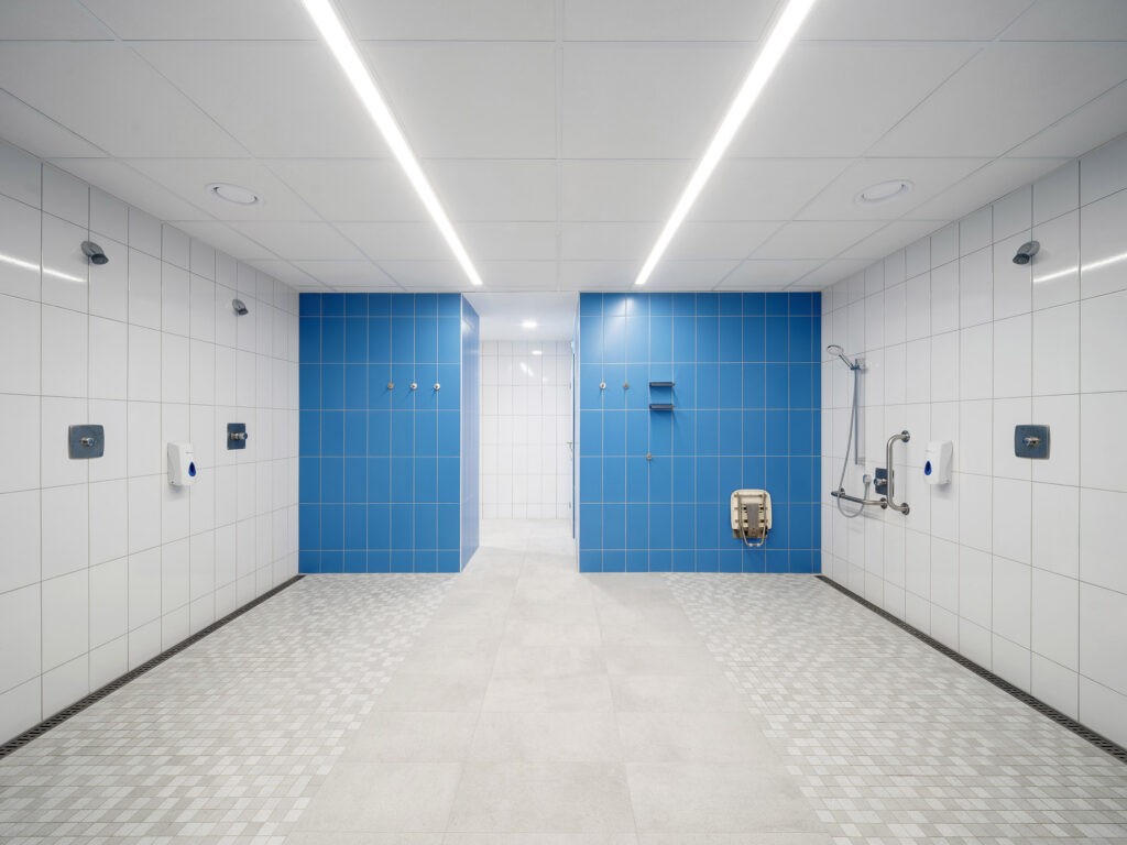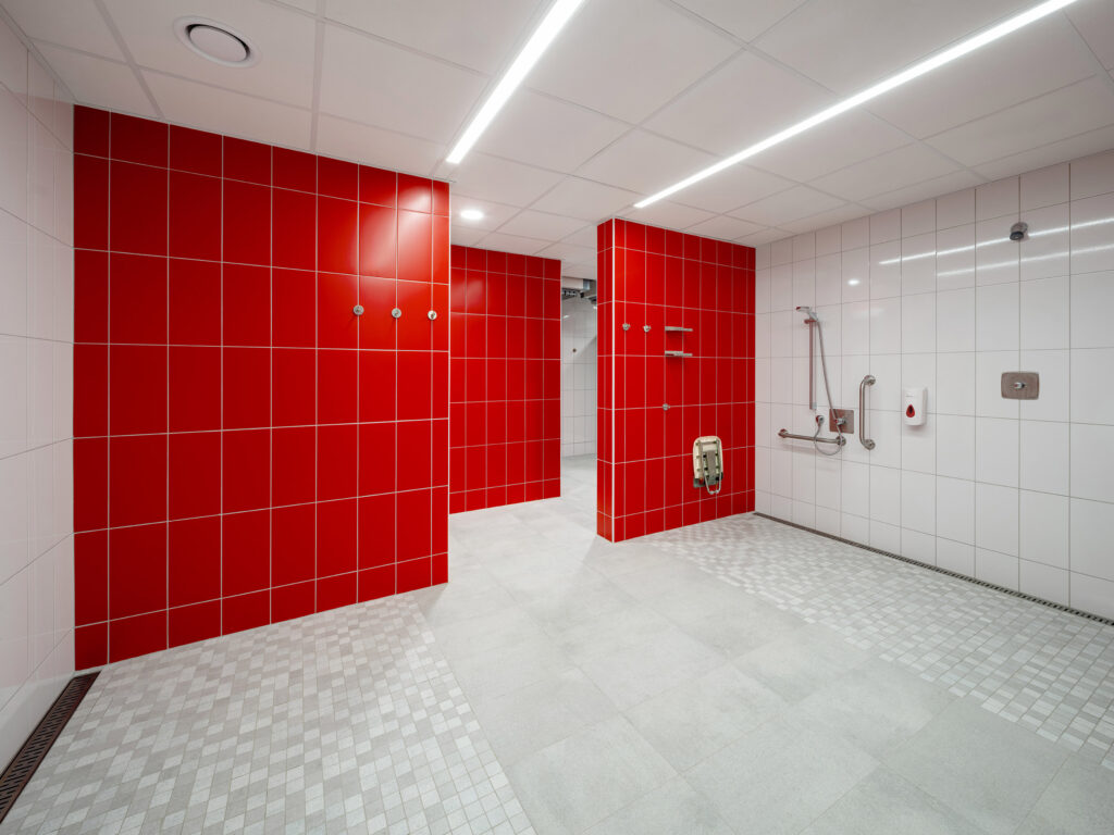 „Při výběru materiálů pro bazény je kladený důraz na kvalitu, dlouhou životnost a snadnou údržbu,“ konstatuje Richard Dvořák z projektového týmu LASSELSBERGER. „Zároveň je nutné hledat řešení – materiály, které splňují přísné normy, vyhlášky na protiskluzné povrchy jak v bazénu, tak ve sprchách nebo v šatnách. Výrobky RAKO jsou v souladu s novými požadavky Vyhlášky 146/2024 pro hygienické prostory, konkrétně na protiskluznost R10 pro WC a sprchy. Keramické obklady RAKO nabízí pro bazény širokou škálu protiskluzných povrchů – pro chůzi v obuvi v rozsahu R9–R12 a pro chůzi bosou nohou v rozpětí A/B/C. Součástí dodávky obkladů pro svitavský bazén byly jak klasické formáty, tak i speciální tvarovky, které zajišťují maximální bezpečnost a komfort uživatelů.“