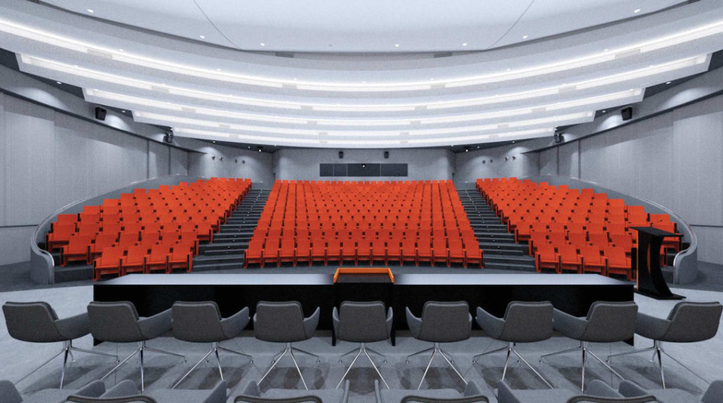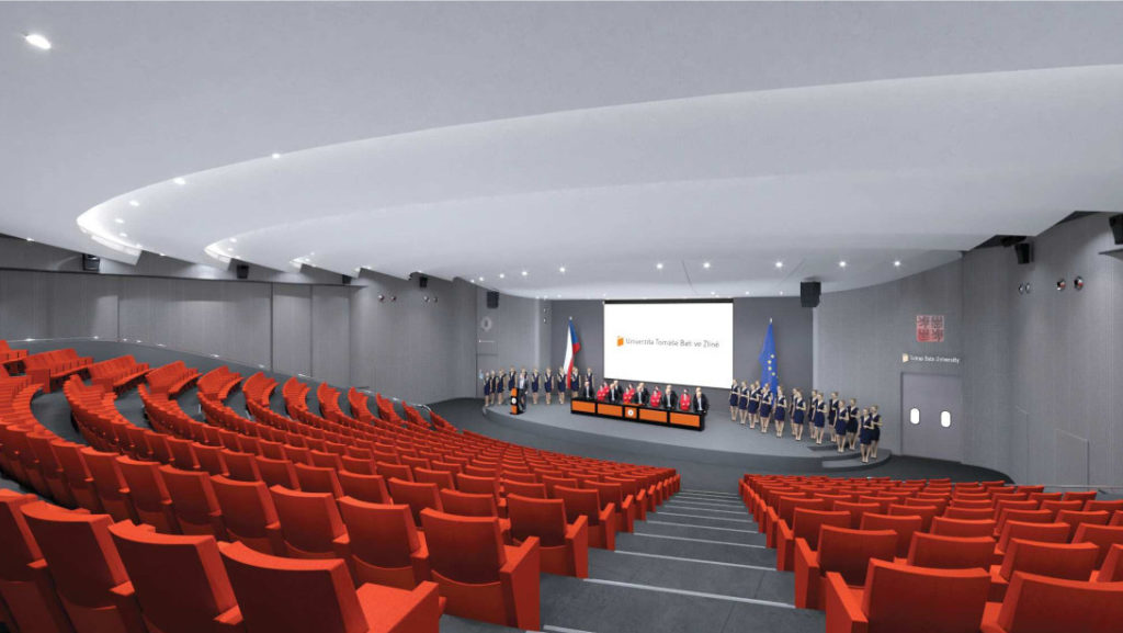 Po čtvrtroce prací už získává aula Academia centra zlínské Univerzity Tomáše Bati budoucí podobu. Dokončeny jsou bourací práce a probíhají navazující stavební a technologické dodávky.