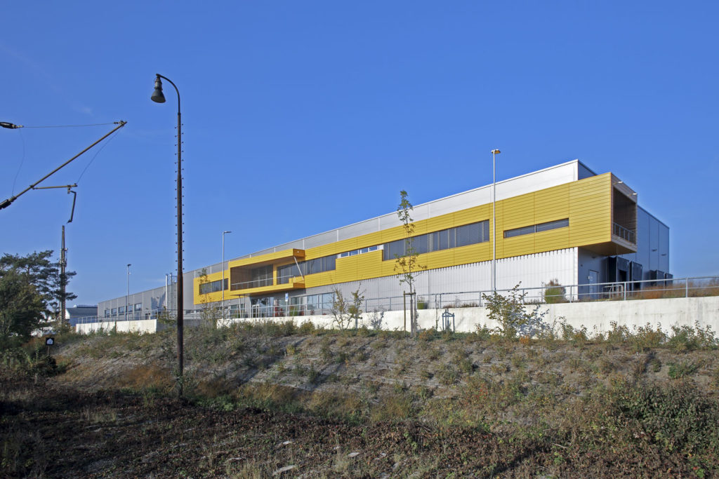 Součástí zadání bylo podpořit základní filozofii společnosti – sounáležitost zaměstnanců jednotlivých oddělení administrativy i celé firmy. Proto jsou kanceláře v maximální možné míře propojené jak mezi sebou, tak i se skladovací a distribuční částí. Objem kanceláří se do šedé hmoty haly propsal žlutým hranolem – tento odstín žluté je firemní barvou. Vstup a zasedací místnost akcentují balkony, dřevěný obklad prochází plynule z interiéru do exteriéru. Obdobně přechází popínavá zeleň fasády do vstupní haly.