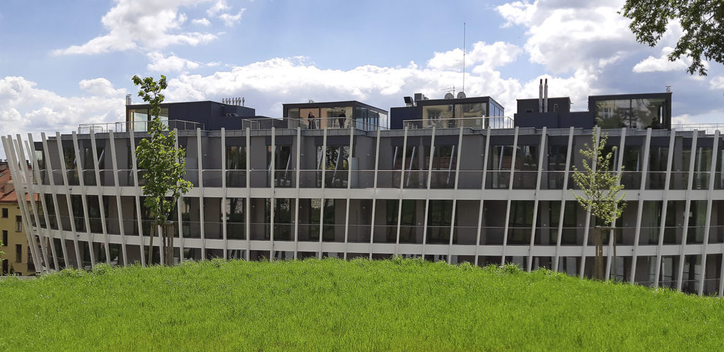 Ve svahu vilové čtvrti Hřebenka na pražském Smíchově se dokončuje novostavba bytového domu Holečkova 26. Budova netradičního eliptického tvaru nabídne nájemní bydlení se zahradou, ale i komerční prostory pro obchody a služby. Pod návrhem stavby, která nahradila v uliční proluce bývalou tiskárnu, je podepsána kancelář DAM architekti, investorem je společnost Irnerio Praha.