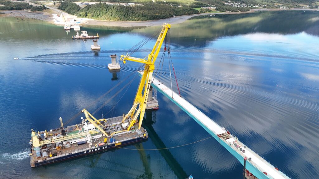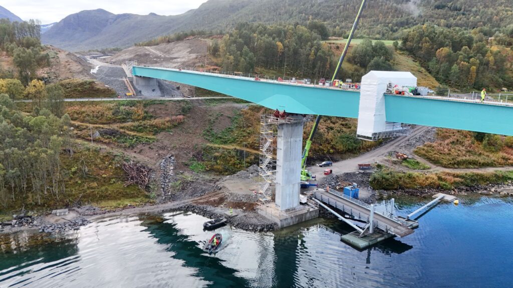 „Dle lokálních zdrojů šlo o největší zdvih uskutečněný v Norsku pomocí lodního jeřábu. O to víc si cením toho, že se nám daří tuto kritickou operaci zvládnout v souladu s harmonogramem. Nyní provádíme tzv. finální podlití ložisek a zahajujeme svářečské práce. Ocelová konstrukce mostu by tak měla být hotová na přelomu roku a následně můžeme navázat betonážemi,“ vysvětlil Matěj Novotný, vedoucí projektu z Metrostavu Norge.