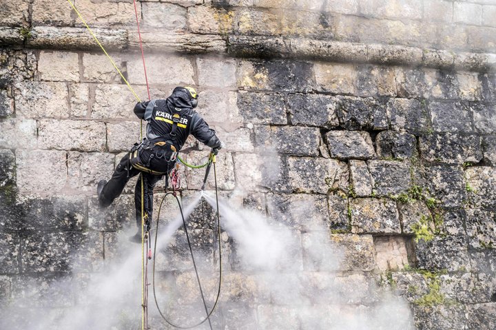 Přes 120 metrů dlouhé a až 14 metrů vysoké stěny jsou postaveny z vápencových bloků. Za dlouhá léta je znečistil mech, řasy či usazeniny vodního kamene. Experti Kärcher pak slaňovali ze střech, aby mohli fasádu patřičně očistit. Jako nejvhodnější a nejšetrnější čisticí postup byla zvolena metoda čištění horkou párou, a to zejména pro svou šetrnost k historickému materiálu fasády.