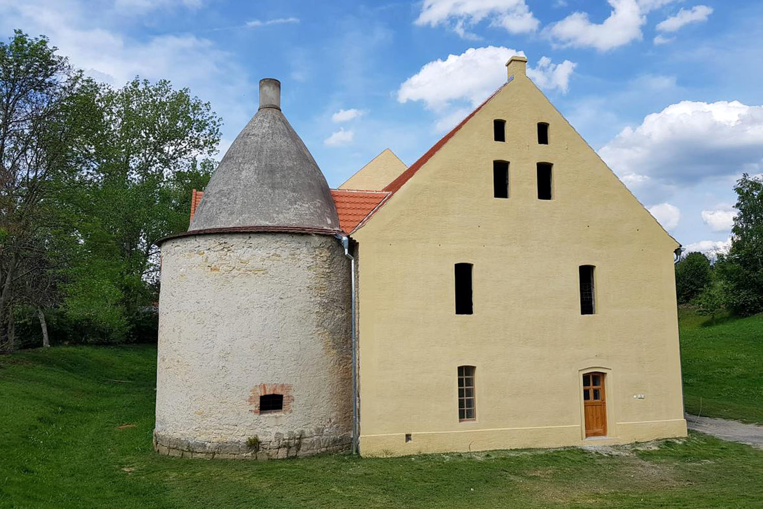 Úvodem si dovolím uvést úryvek z článku „Chmelařský památník“, sepsaného T. Č. Zelenkou v roce 1966 pro časopis Krásy domova: „A zde v Dubé se zachovala chmelařská památka, jakou již nikde v naší vlasti nenalezneme. Skromně, takřka v rafinovaném skrytu před očima návštěvníka, který ji výslovně nehledá, uchovala se přes téměř čtyři století sušárna chmelu, která je nejen nejstarší, ale dnes již svého druhu jediná v celém našem státě. Dvouvěžová stavba silných kamenných zdí jako dvojice rotund s kopulemi hlásí se svým tvarem do přelomu 16. a 17. století. Již dosloužila účelu, ke kterému byla zbudována, snad se dnes nedá jinak využít, ale jako jedinečná památka svého druhu dříme tato půvabná krasavice v tichu zapomenutí. Jediným jejím průvodcem je jen nevděk a nedostatek jakéhokoliv zájmu o nutnost třeba jen nevelké údržby, aby se časem nezhroutila v kupu trosek.“