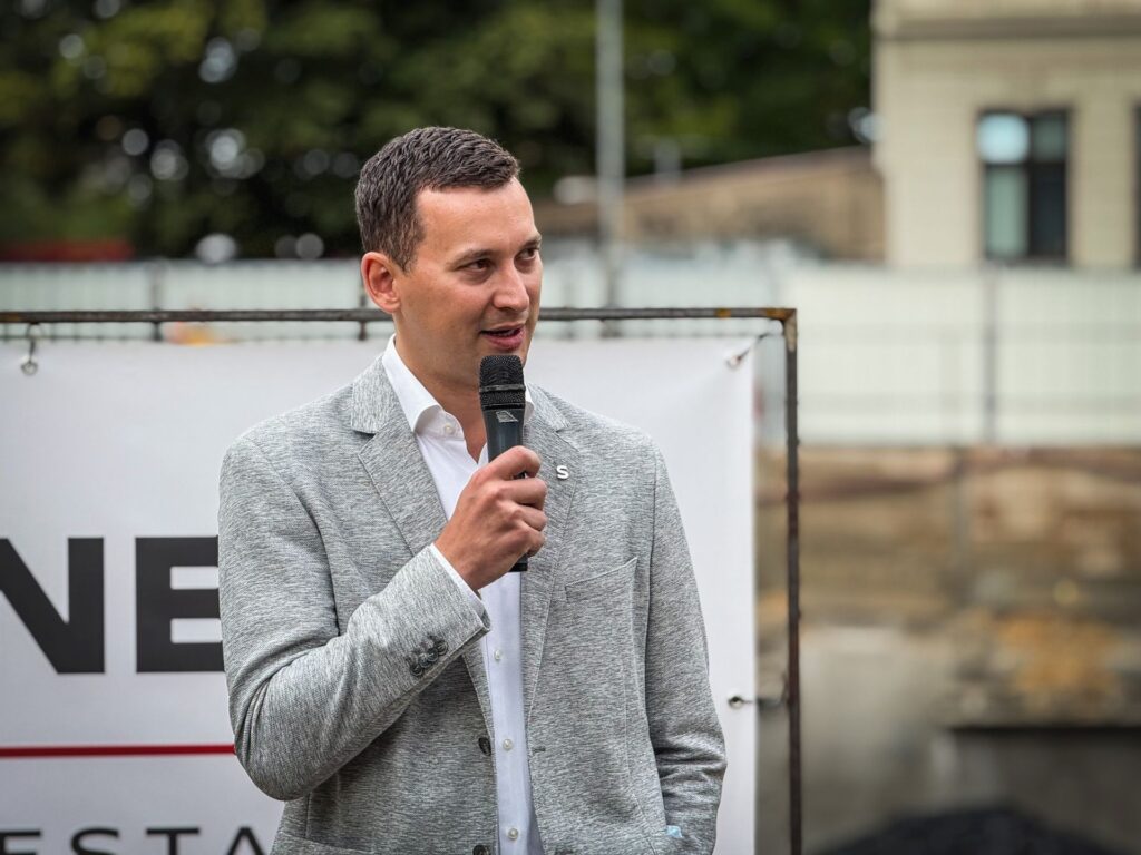 V jedné z nejdynamičtějších a nejkreativnějších pražských čtvrtí, v Holešovicích, proběhlo slavnostní poklepání a symbolický křest základního kamene rezidenčního projektu MUSE7. „Dnes propojujeme minulost tohoto místa s jeho budoucností. Klepeme na opuku, více jak metrový kámen, nalezený při bourání staticky nestabilního domu z roku 1890, a to v jeho základech. A právě dnes jsme kameni vrátili jeho původní význam – stane se totiž součástí moderní MUSE7,“ uvedl Petr Syrovátko Jr., představitel developera SYNER Real Estate, a dodal: „Z původní zástavby se nám podařilo zachovat jednu historicky cennou budovu, kterou revitalizujeme a díky níž propíšeme do MUSE7 genius loci tohoto místa v kombinaci s moderní technologicky vyspělou novostavbou.“