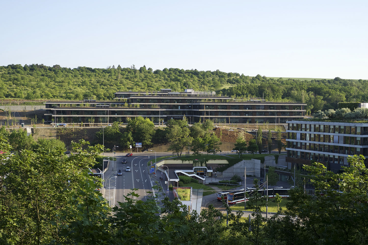 Letos byla dokončena stavba rozšířené centrály pro ČSOB v pražských Radlicích. Architekti Marek a Štěpán Chalupovi budovu navrhli tak, aby respektovala prostředí Radlického údolí a ještě posílila jeho kvality. Stavba kopíruje reliéf svahu, do kterého je umístěna, a díky použitým materiálům a střešní zeleni splývá s okolím.