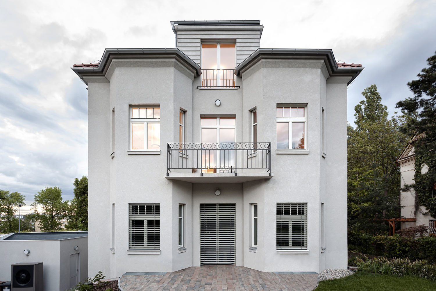 Nejvýraznějším zásahem vně objektu byla změna hlavního vstupu a s tím spojené vybudování nového schodiště. Historická reminiscence původní vertikální komunikace s ladnými křivkami zábradlí ponechává domu vážnost.
