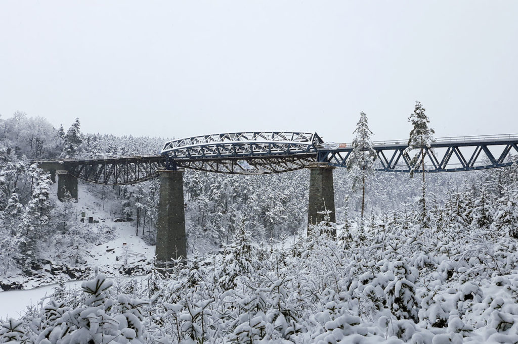 Rekonstrukce 120 let starého železničního mostu nad hracholuskou přehradou probíhala unikátním způsobem – každý ze tří dílů nové nosné ocelové konstrukce mostu stavbaři spojili společně se starou konstrukcí a pomocí malých hydraulických lisů přetočili o 180° do finální projektované polohy. Podobná metoda se v České republice zatím nepoužila – každé otáčené pole i s montážním rámem a starou nosnou konstrukcí vážily 400 tun. Sdružení společností SMP CZ a MCE Slaný získalo v říjnu 2019 za tuto stavbu ocenění od Evropské asociace ocelových konstrukcí.