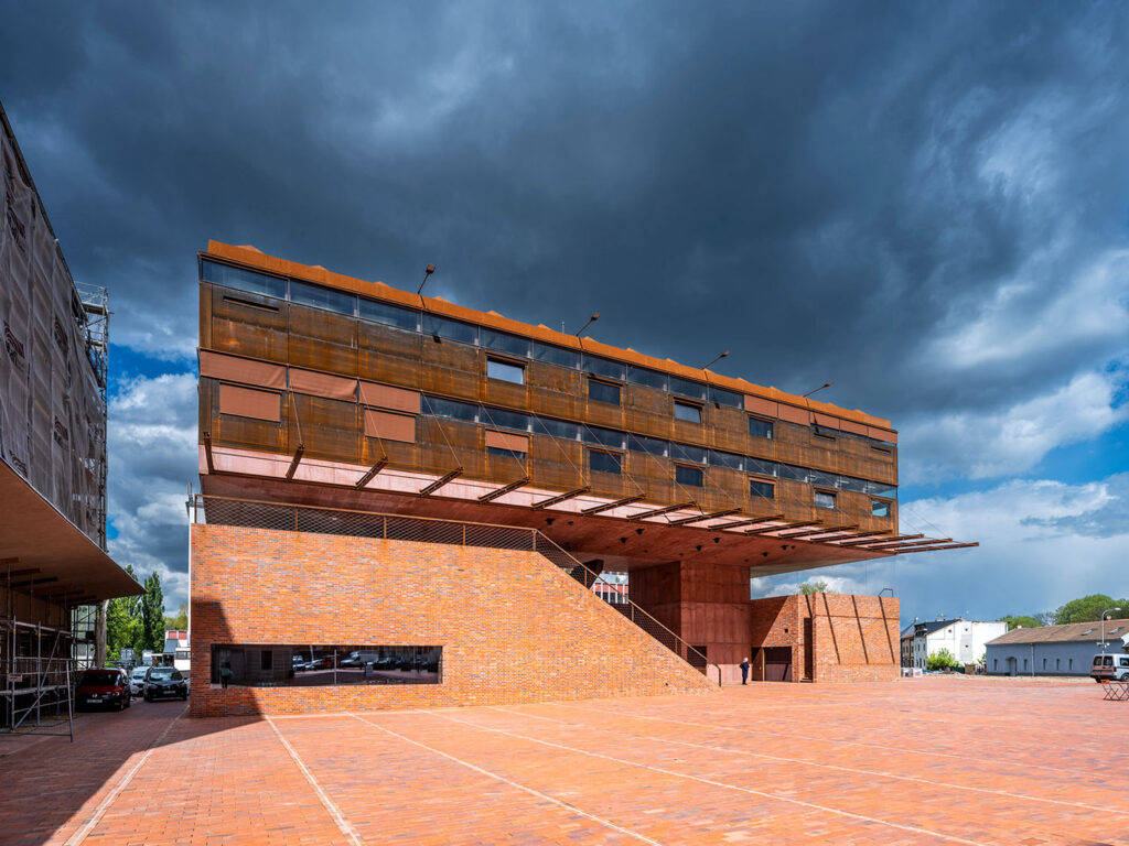 Novostavba GAMPY a Sféry uzavírá blok areálu Winternitzových automatických mlýnů ze severní strany. Jde vlastně o dva objekty, každý z nich má svůj program: v parteru se nachází Galerie města Pardubic, nad ní levitují Centrální polytechnické dílny. Při řešení objektu si autoři kladli otázku pravdivosti architektonického výrazu. Odpovědí je přiznaná konstrukce a materiálové provedení. Tam, kde vidíme cihly, jsou zděné nosné stěny, kde je pohledový beton, jedná se o nosnou betonovou konstrukci, a kde se nachází obklad z cortenového plechu, je plášť panelů.