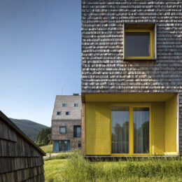 Obě stavby autoři pojali v tradičních materiálech – v podhůří Jeseníků se odjakživa stavělo ze dřeva. Jsou téměř stejné, odlišuje je jen jiná barva kolem oken a v mozaikách lodžií. Dřevěné fasády a střechy byly v návrhu od začátku, při průzkumu tradičního stavění v dané lokalitě a technik údržby dřeva padla volba na modřínový […]
