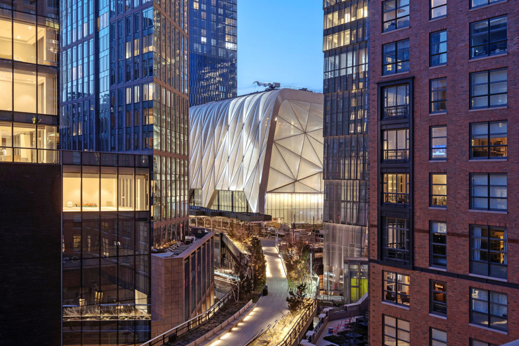 Přímo na High Line, v nové obchodní čtvrti Manhattanu zvané Hudson Yards, studio Diller Scofidio + Renfro ve spolupráci se společností Rockwell Group vytvořily avantgardní architektonickou stavbu Shed. Tato celistvá, osmipodlažní budova má stříbřitý lesklý povrch vyrobený z fóliových polštářů Texlon® ETFE. Její součástí jsou dvě úrovně galerie bez pilířů o rozloze 2300 m2.