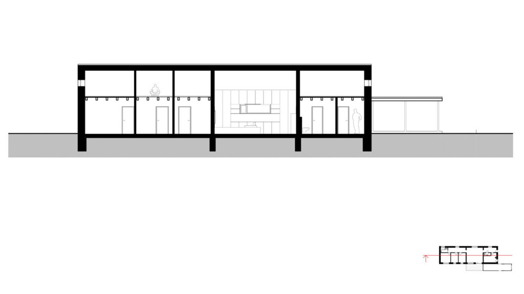 Co činí dům výjimečným, nejsou dokonalé minimalistické detaily, ani luxusní materiály. Je to právě atmosféra obyčejného vesnického, přesto velmi útulného domova. Na vstup do domu navazuje páteřní dlouhá chodba napříč celým domem až k jeho druhému konci. Podél její stěny prochází celým domem nábytková stěna. Nejprve v podobě botníku a šatní skříně v zádveří, dále pak navazuje jako kuchyňská linka v obytné místnosti, aby svoji službu zafinišovala coby šatna v chodbě k pokojům a ložnici. „Tuto stěnu jsme navrhovali my ve studiu. Další části interiéru jsme navrhli pouze v hrubosti ve formě několika skic. Zbytek interiéru už si majitelé domu navrhli sami, a ještě jej postupně vylepšují a doplňují,“ upřesňuje architekt Vymetálek ze studia Bydloarchitekti.