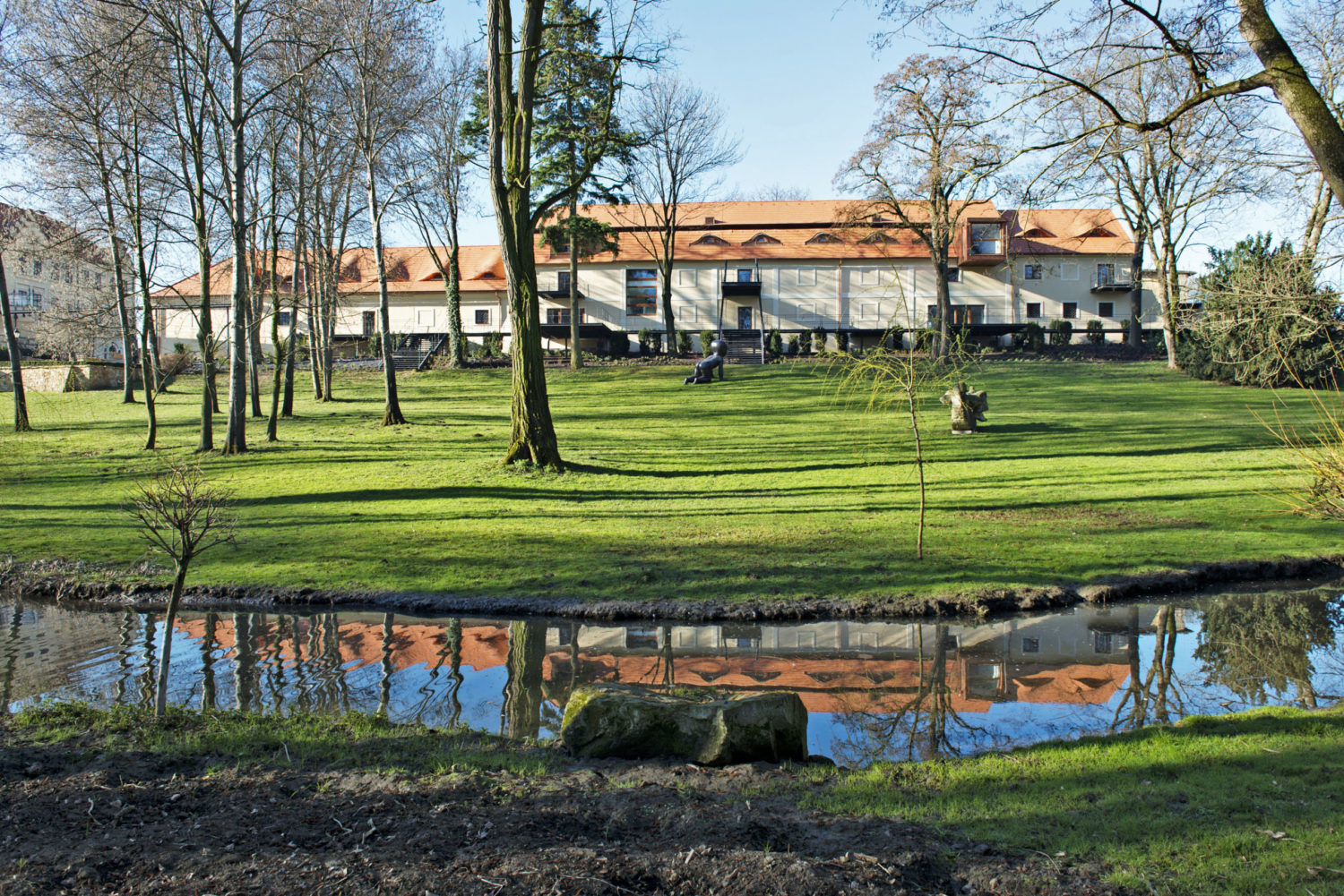 Areál s rozsáhlou zahradou, rybníkem a zámeckými budovami se nachází na okraji obce Jirny ve Středočeském kraji. Bývalá sýpka se proměnila na výstavní galerii a depozitář. Její interiéry bylo třeba maximálně otevřít, a to včetně podkroví. Střešní plášť je nový, naskytla se tedy možnost jeho zateplení minerální izolací.