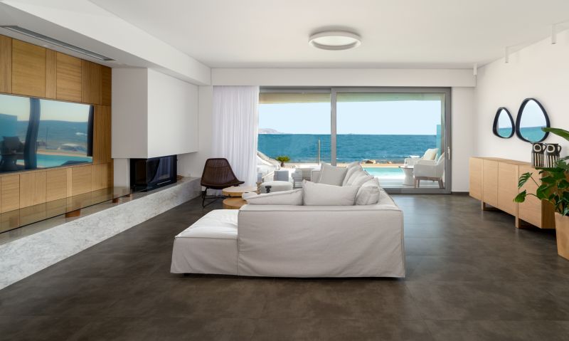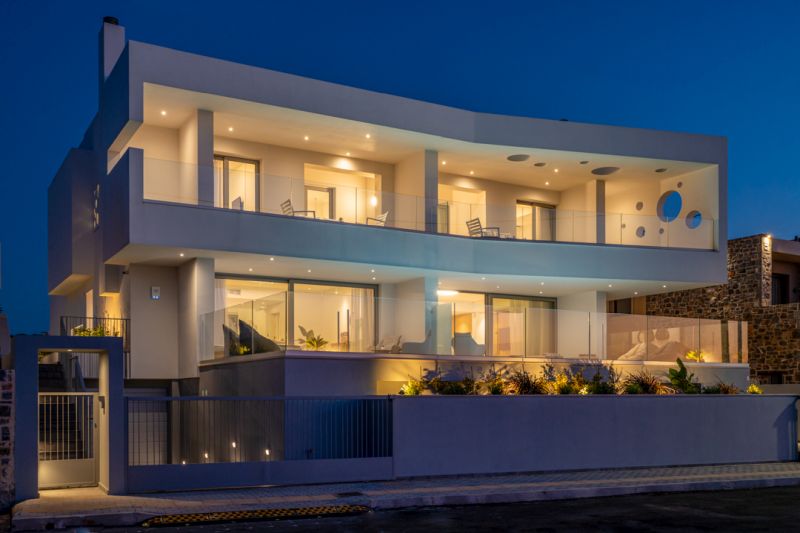 V malebné oblasti Gouves na ostrově Kréta s impozantním výhledem na Středozemní moře, se rozkládá vila s plochou 320 m². Tento skvost byl navržen talentovaným duem architektů Nikosem Mourelosem a Marií Pervolaraki, kteří získali zakázku od majitele s vysokými nároky na kvalitu a design. Jakékoli únavy z cestování nebo dlouhého letu zde rychle pominou, protože majestátnost této stavby okamžitě upoutá pozornost – svým hranatým a přesto hravým designem, doplněným působivými detaily v podobě kruhových výřezů vzhledově připomínajících bubliny.